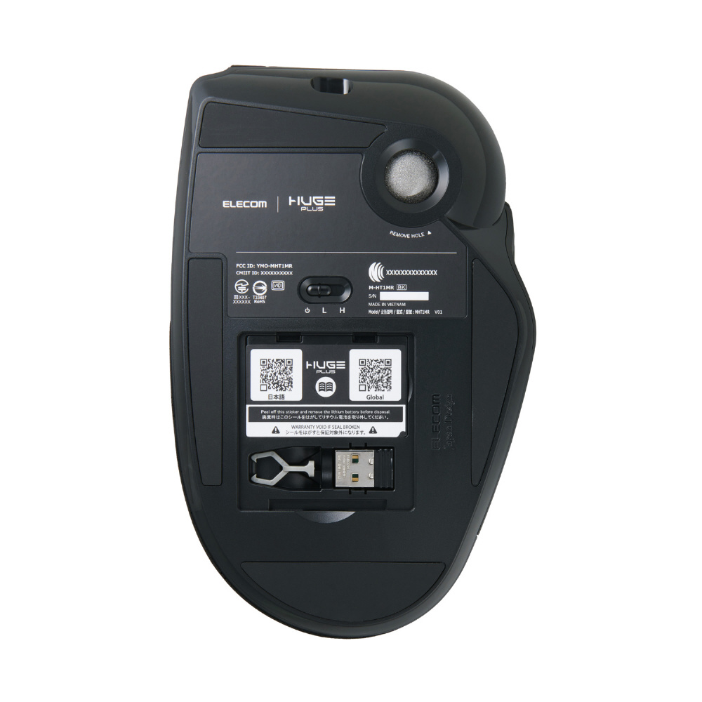 マウス トラックボール HUGE PLUS(Chrome/Android/iPadOS/iOS/Mac/Windows11対応) ブラック M-HT1MRBK [IR LED /有線/無線(ワイヤレス) /10ボタン /Bluetooth・USB]