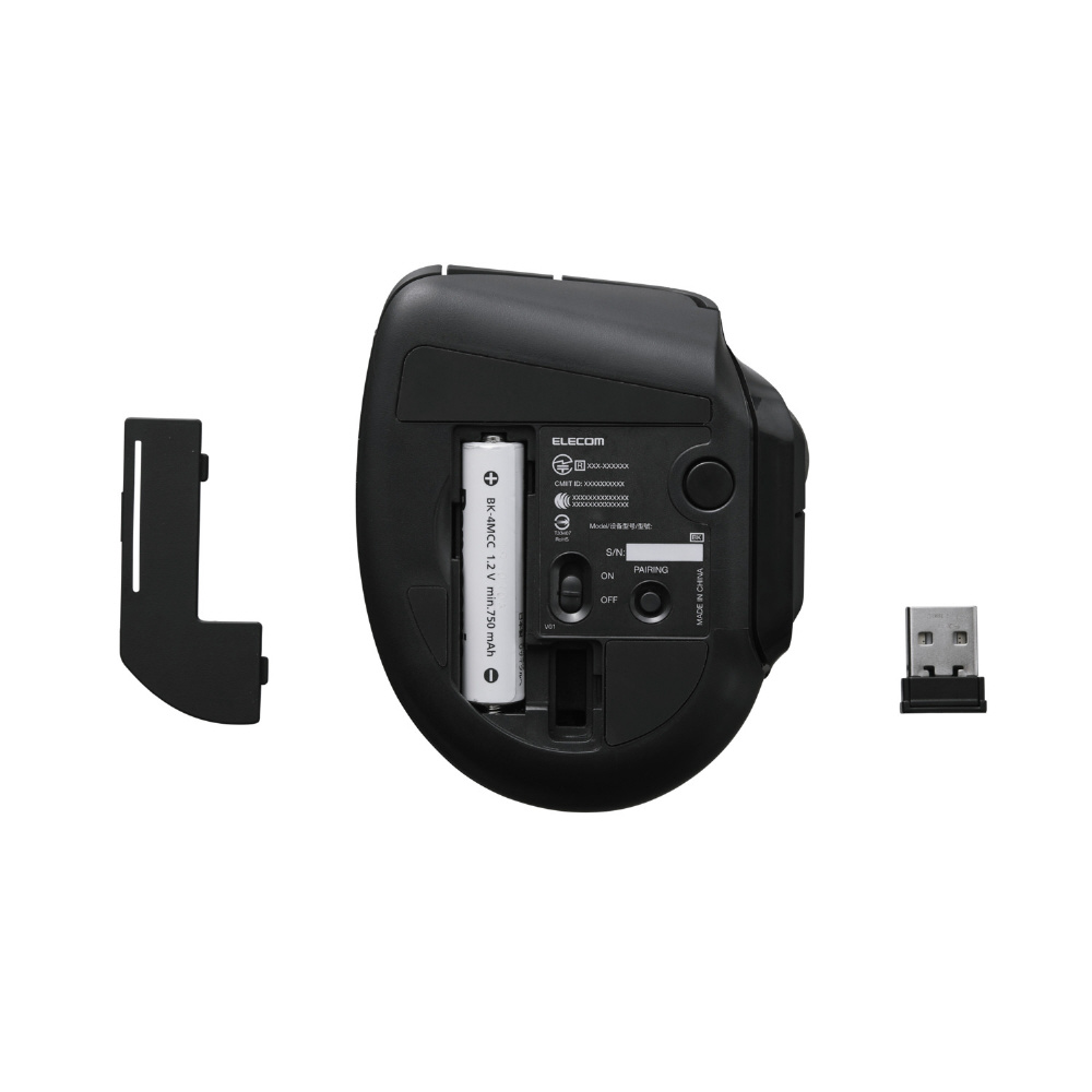 ワイヤレスレシーバーはトラックボール本体内に収納可能で紛失する心配を軽減します。