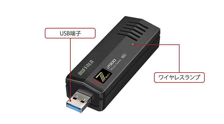 本商品は、Wi-Fi 7に対応した無線LAN子機です。パソコンのUSB端子に装着して、Wi-Fi 7の高速通信が可能です。本商品はUSB 3.2(Gen1)に対応しているので、Wi-Fi 7のスピード性能を余すことなく活かすことができます。