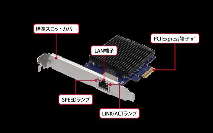 ・×1レーンで10Gbps通信を実現。空きスロットに手軽に増設。