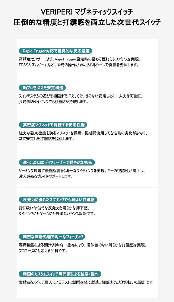 ■圧倒的な精度と打鍵感を両立した次世代スイッチ「VERY PERIマグネティックスイッチ」