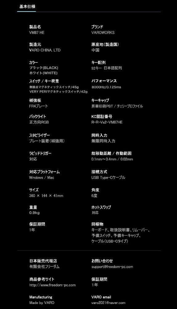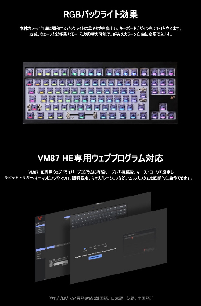 ゲーミングキーボード(ラピッドトリガー対応) VARO VM87 HE 無接点 ホワイト VM87HE-J-NCW [有線 /USB]