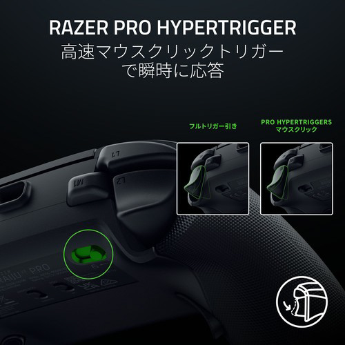 Razer のプロ仕様の PS5 ゲーミングコントローラーで、競技で力を発揮しよう。歯切れのよい速射クリックや、フルアナログコントロールで長く正確な発射を行うことができます。それぞれのトリガーを独立して設定できます。すべてスイッチひとつでできます。