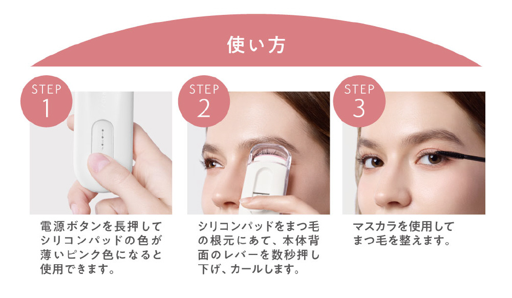 まつ毛のタイプに合わせて温度を選べるから、細いまつ毛からしっかりめのまつ毛まで幅広く対応!