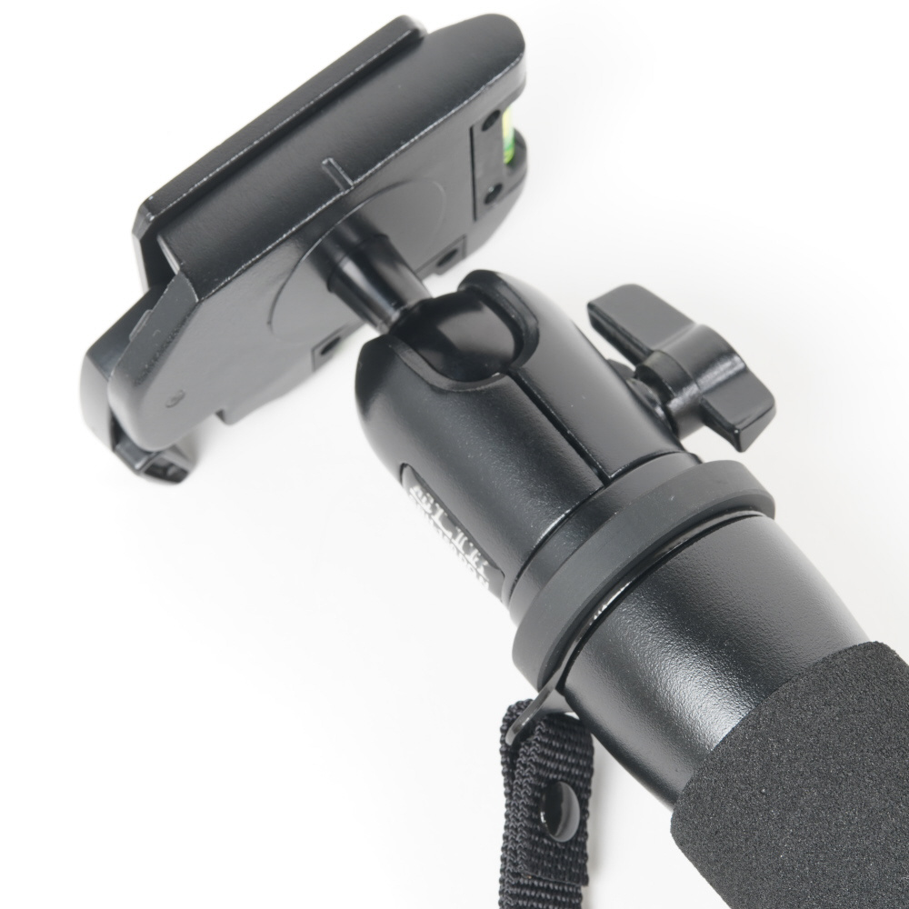 ストラップは、持ち運び時には手を通して落下防止に。撮影時は手を通すことで一脚の転倒防止に役立ちます。グリップは、劣化や破損が少ないゴム成型パーツを採用。