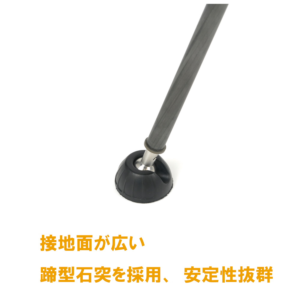 ボールジョイントで接地面に合わせて傾きが変わり、さらに接地面が広くて安定する蹄型石突を採用。