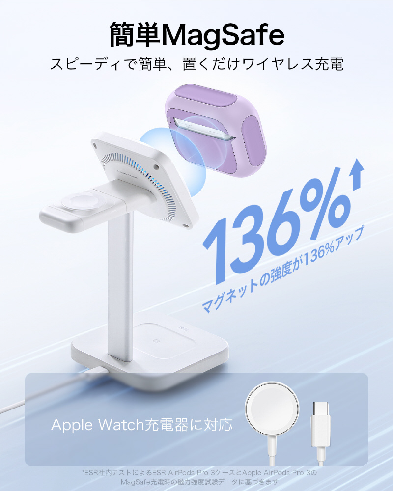ケース背面に強力な磁石を内蔵し、MagSafe充電器へのしっかりとした固定を実現。ワンタップでのワイヤレス充電を快適に楽しめます。