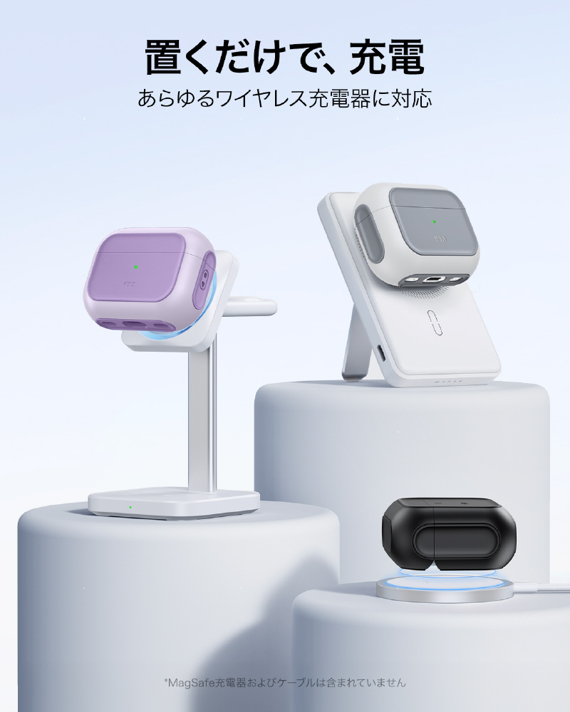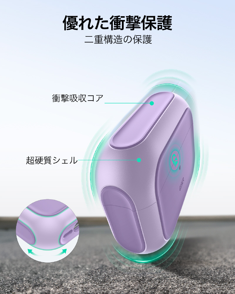 超硬質シェルと柔軟で衝撃吸収性に優れたコアの二重構造が、充電ケースを衝撃からしっかり守り、新品のような美しさを保ちます。