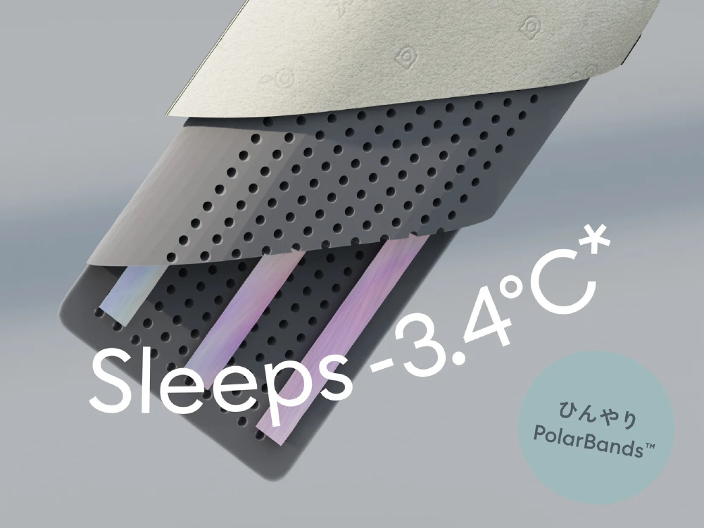 熱を放散するPolarBands(TM)、好みで硬さを自在に調整できるデザイン、洗えるカバーは一年中快適なリバーシブル仕様。仰向けでも横向きでも心地よい眠りをサポートします。