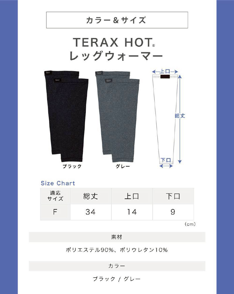 TERAX HOT 血行促進温感 レッグウォーマー (フリーサイズ) グレー TKL1012-GR00