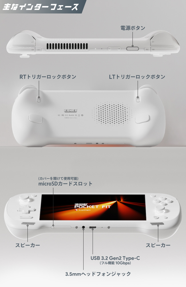 KONPKF-G3-12256W ポータブルゲーミングPC Pocket FIT [6インチ /Android14 /RAM:12GB /ROM:256GB] スノウホワイト [Snapdragon /2025年12月モデル]