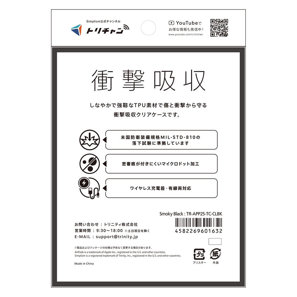 AirPods Pro3対応クリアTPUケース スモーキーブラック TR-APP25-TC-CLBK