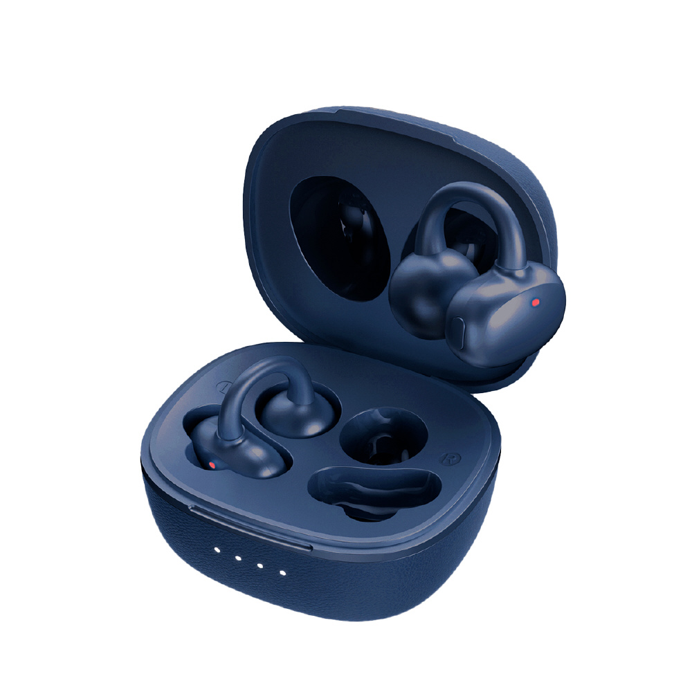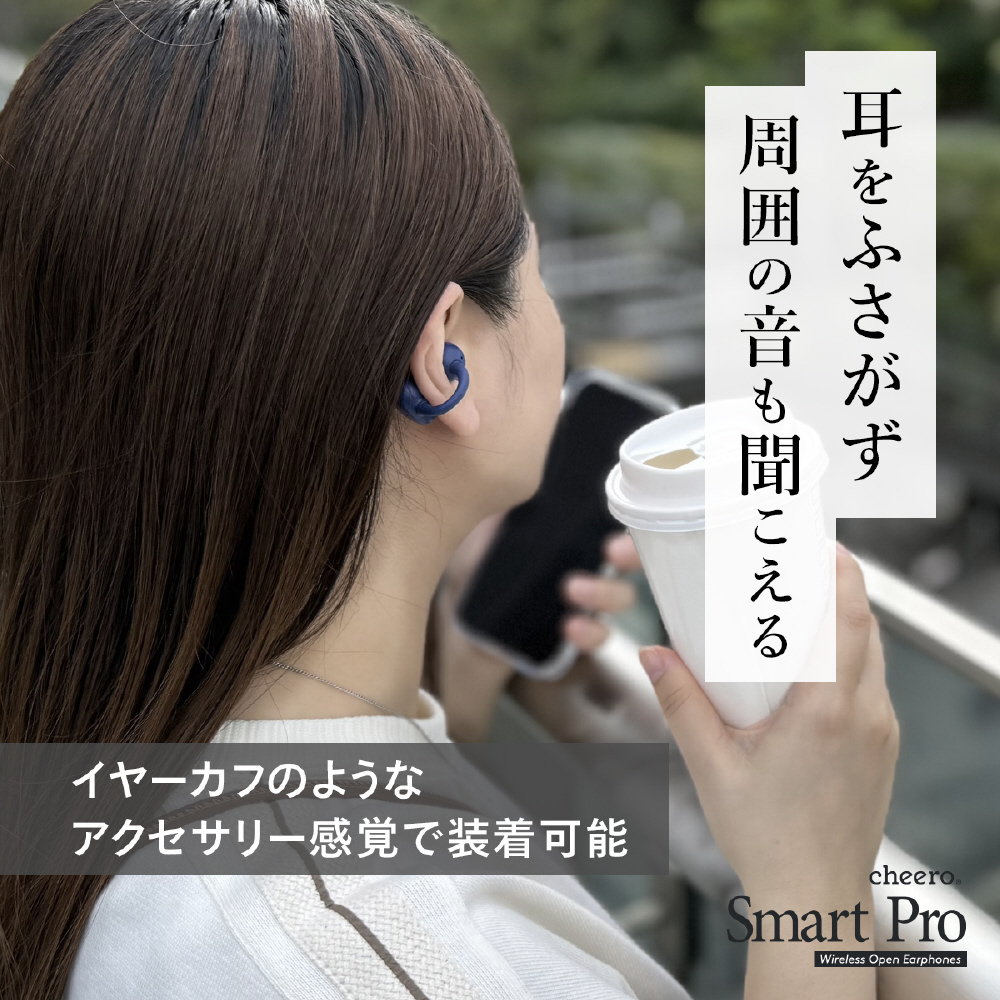 イヤーカフのように装着できるオープン型ワイヤレスイヤホン。圧迫感がなく、長時間の使用でも快適です。