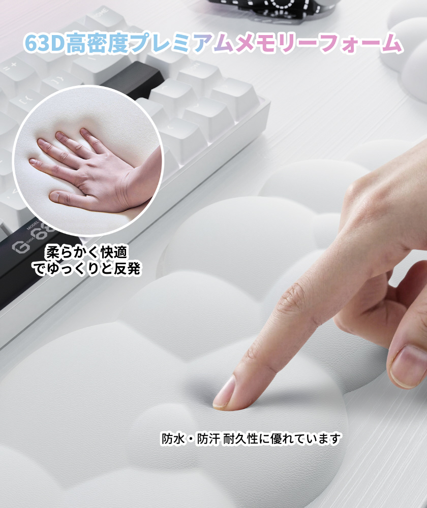高密度な3Dメモリフォームと柔らかいPUレザーで誰の手にも合う触り心地