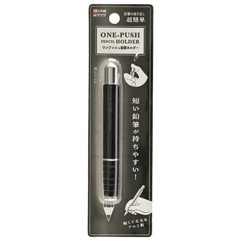 抜き差し簡単ワンプッシュ! ワンプッシュで簡単に鉛筆を着脱 消しゴム付 すべり止め加工 光沢感のあるアルミ製