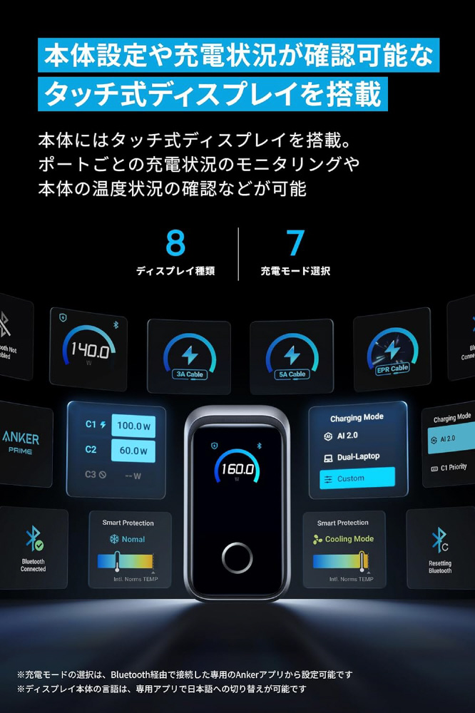 急速充電器 Anker Prime Charger (160W 3Ports) A2687N41 [3ポート /USB Power Delivery対応 /GaN(窒化ガリウム) 採用]