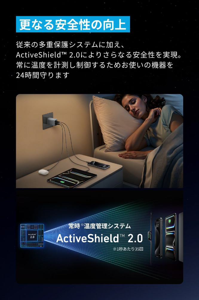 従来の多重保護システムに加え、ActiveShield 2.0によりさらなる安全性を実現。常に温度を計測し制御するためお使いの機器を24時間守ります。