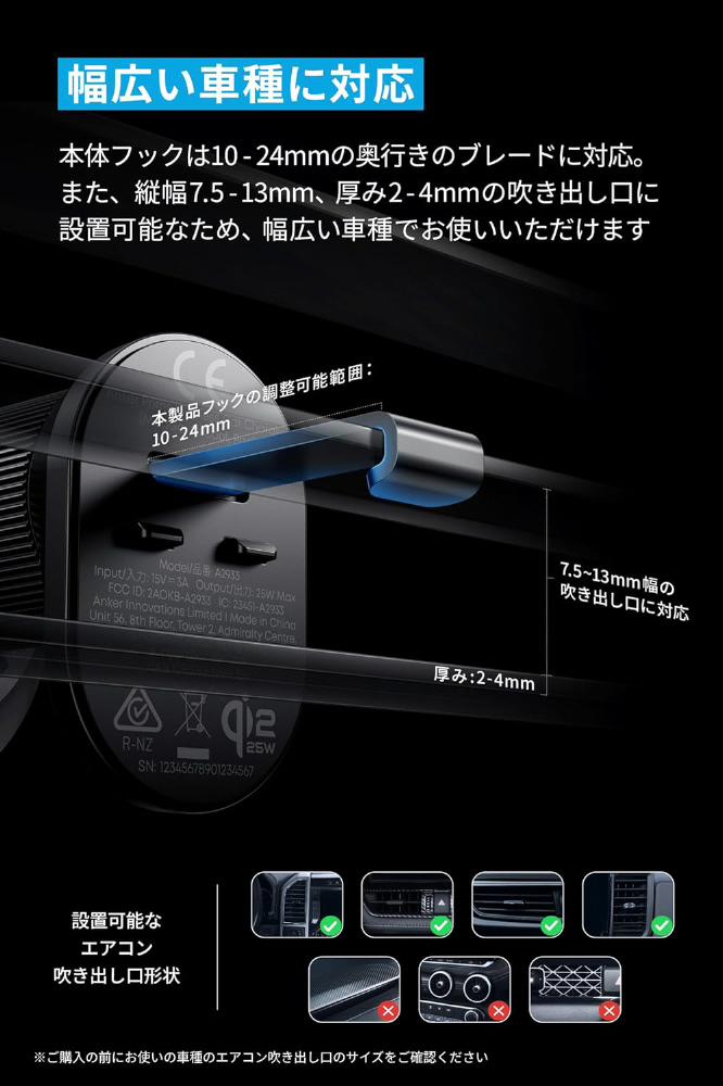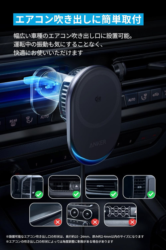 ワイヤレスカーチャージャー Anker Prime Wireless Car Charger (MagGo AirCool Pad) B2933N11 [USB Power Delivery対応]