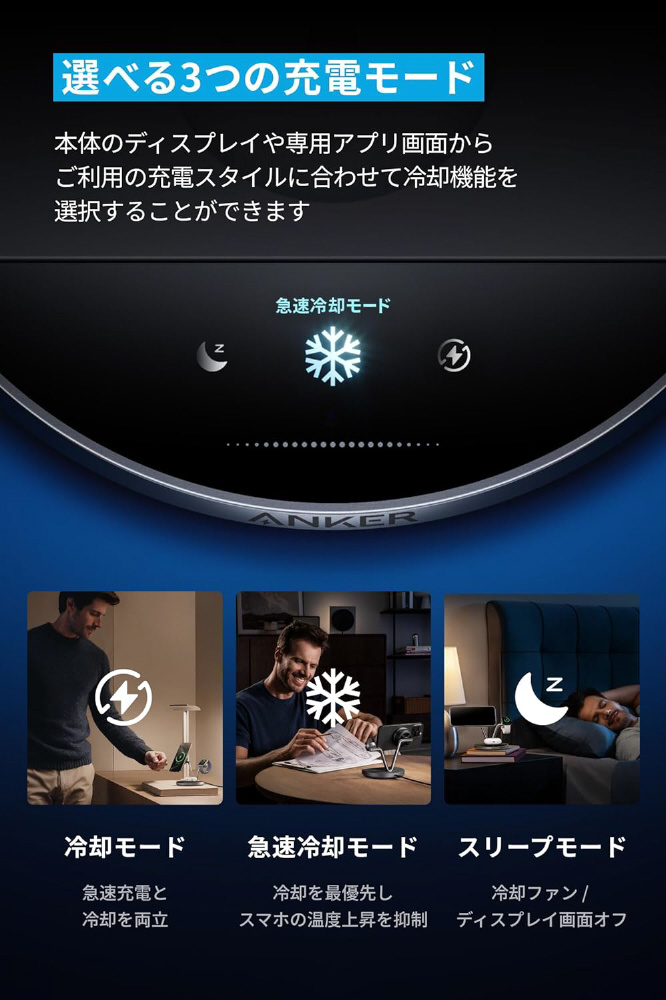 ワイヤレス充電器 Anker Prime Wireless Charging Station(3-in-1 MagGo AirCool Dock Stand) B25X7J11