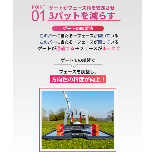 ストロークの軌道を改善し、芯をとらえた一貫したパッティングを促します。