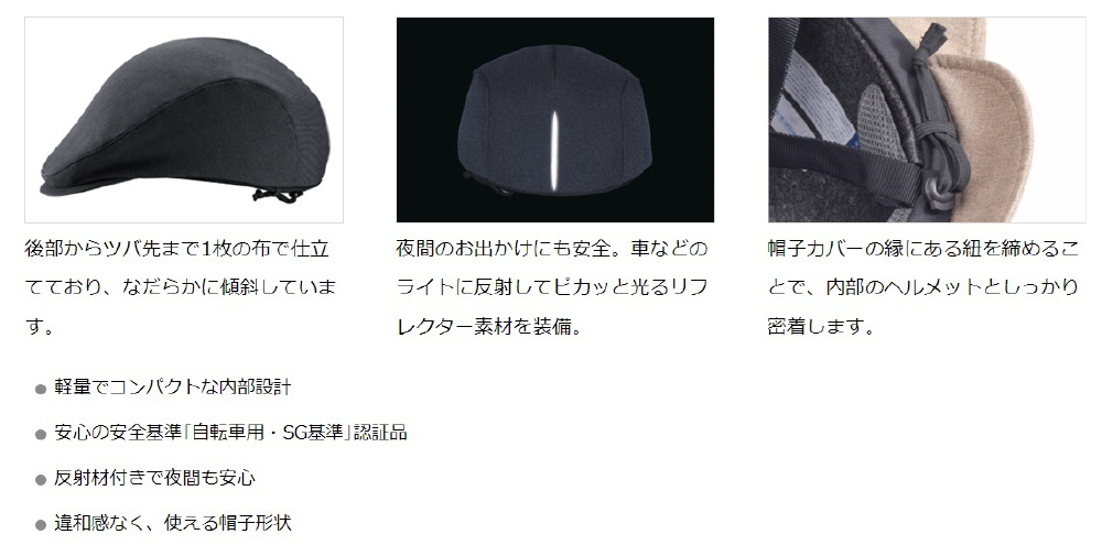 反射材付きで夜間も安心。違和感なく、使える帽子形状。