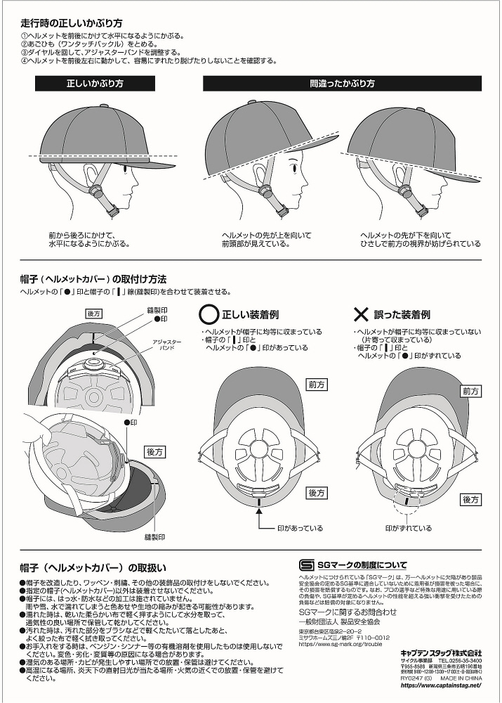 仕様1 材質:シェル=ABS、帽体=EPS、パッド=PU・ポリエステル、あごひも=ナイロン、POM、帽子=ポリエステル