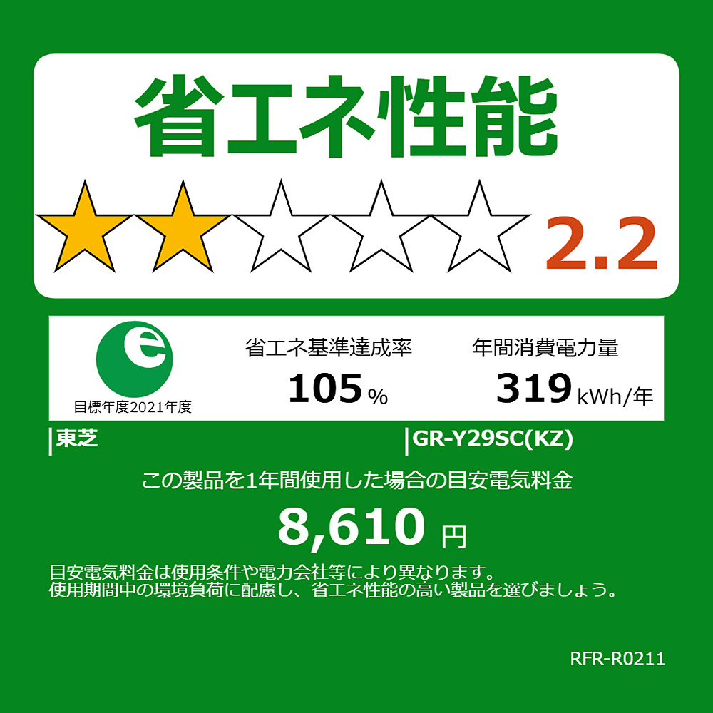 年間消費電力量 319kWh/年(JIS C 9801-3:2015)