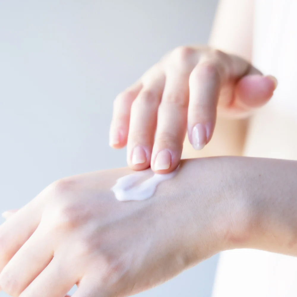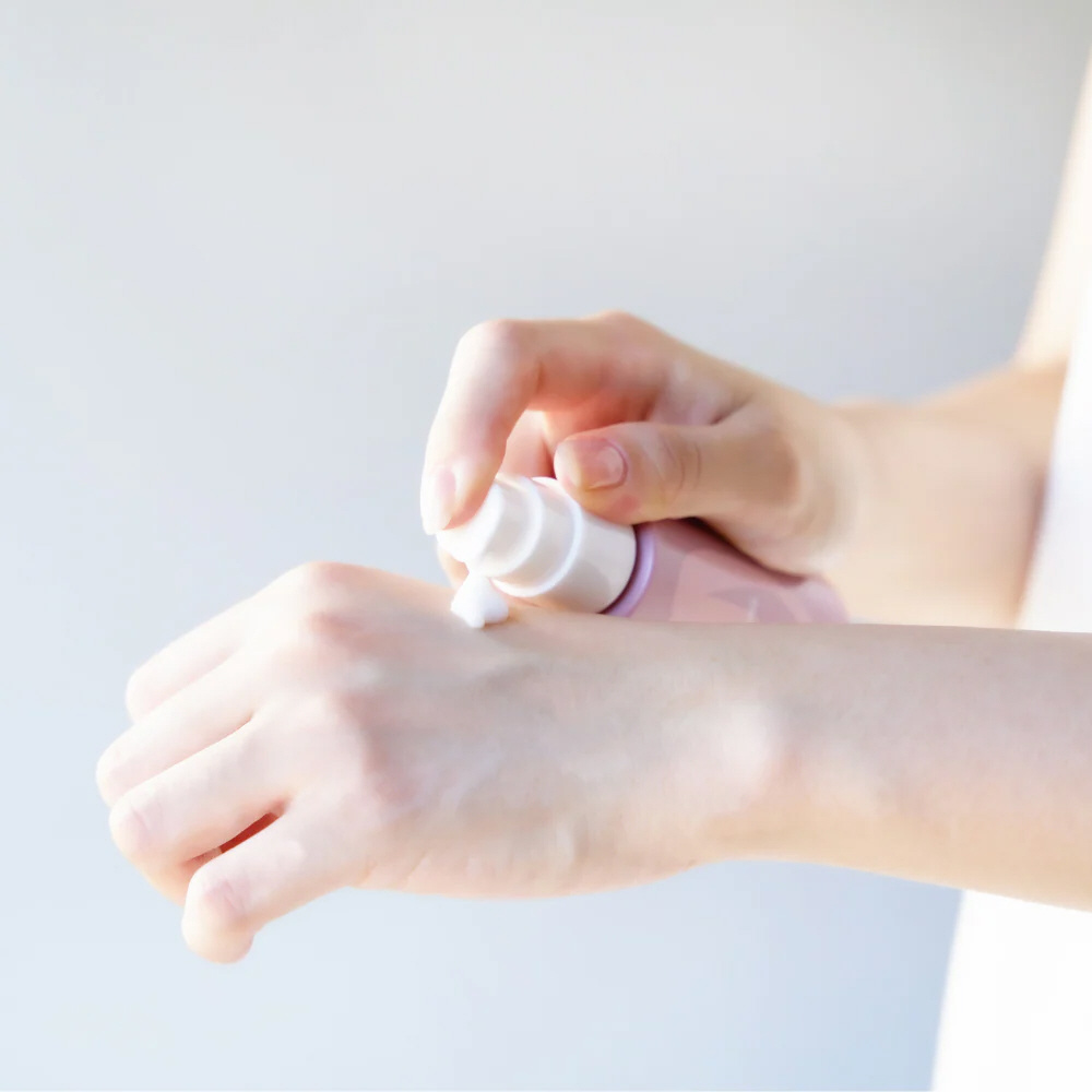 適量を手に取り、薄くのばしながらなじませてください。