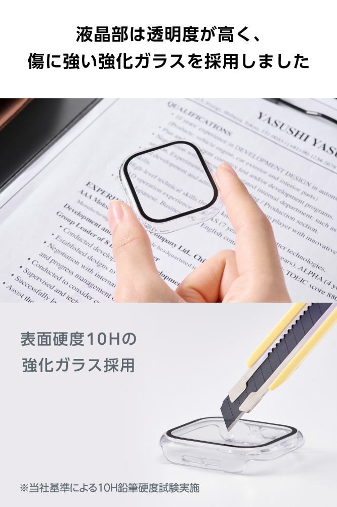 表面硬度10Hの強化ガラス採用により、保護ガラス表面の傷を防止します。