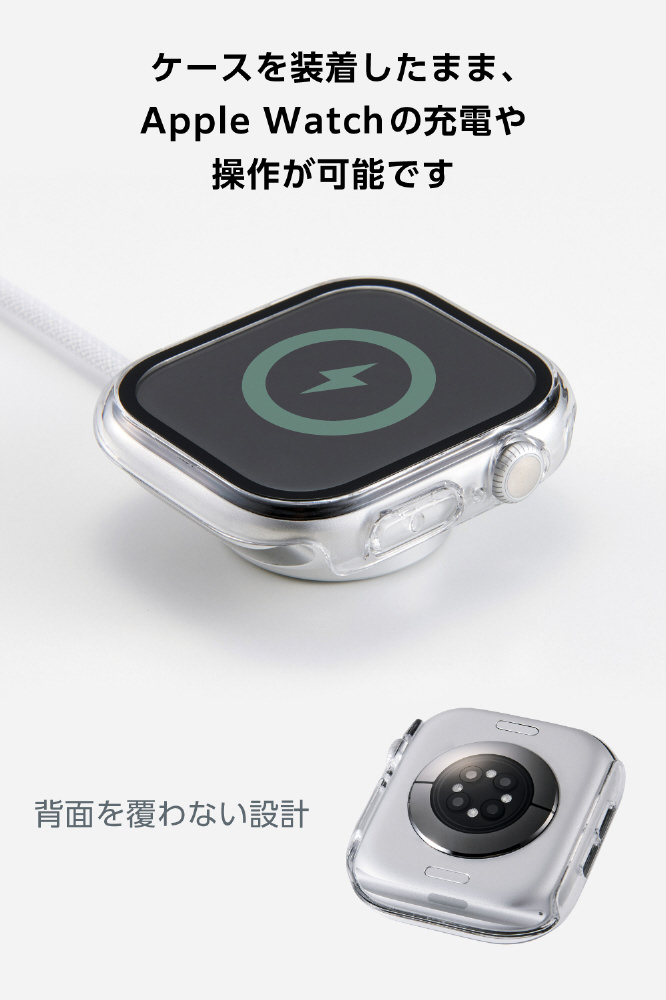 ケースをApple Watchに装着したままで画面の確認、本体の操作、各種ボタン操作、純正の磁気充電ケーブルへの設置が可能です。