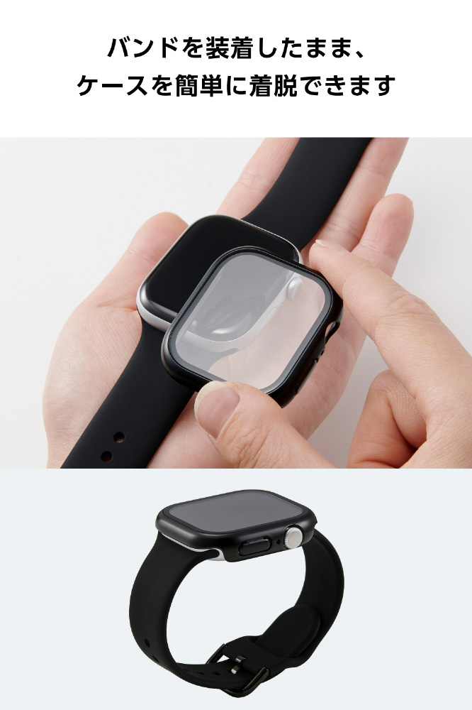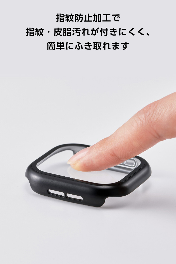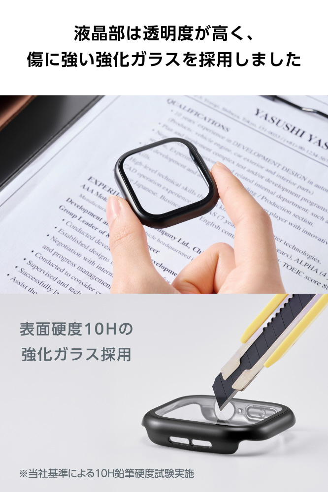 ポリカーボネート素材とガラスの2重構造で、Apple Watchの画面および側面部を保護します。