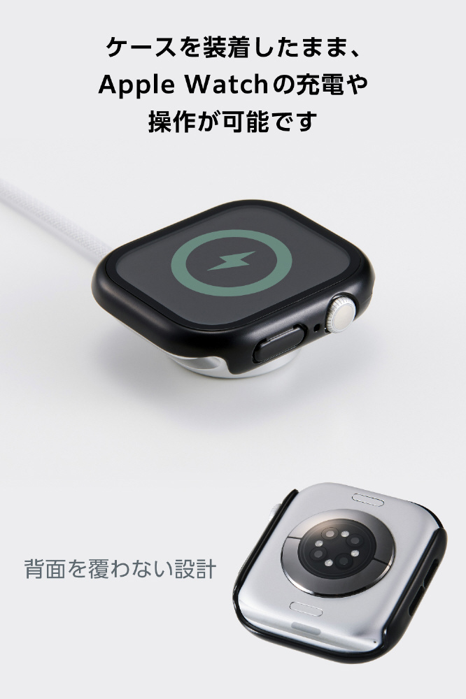 ケースをApple Watchに装着したままで画面の確認、本体の操作、各種ボタン操作、純正の磁気充電ケーブルへの設置が可能です。