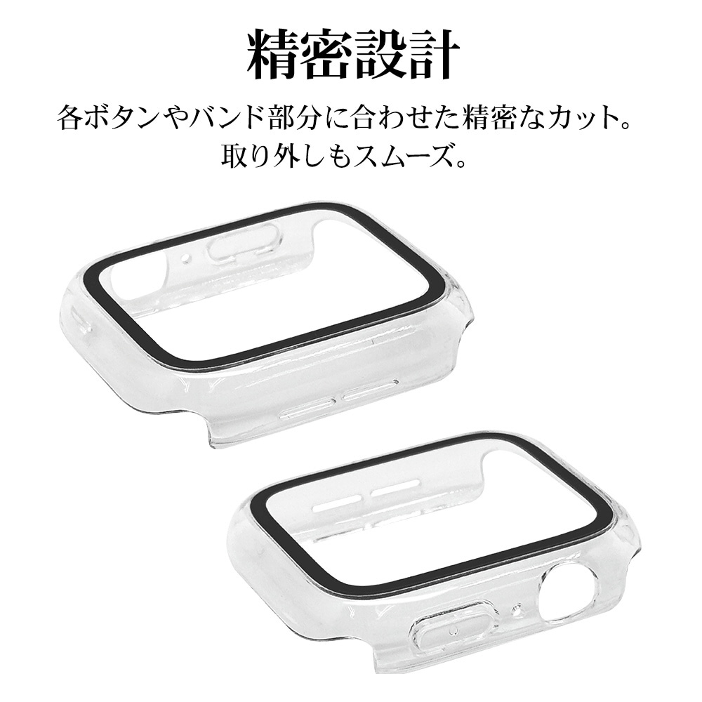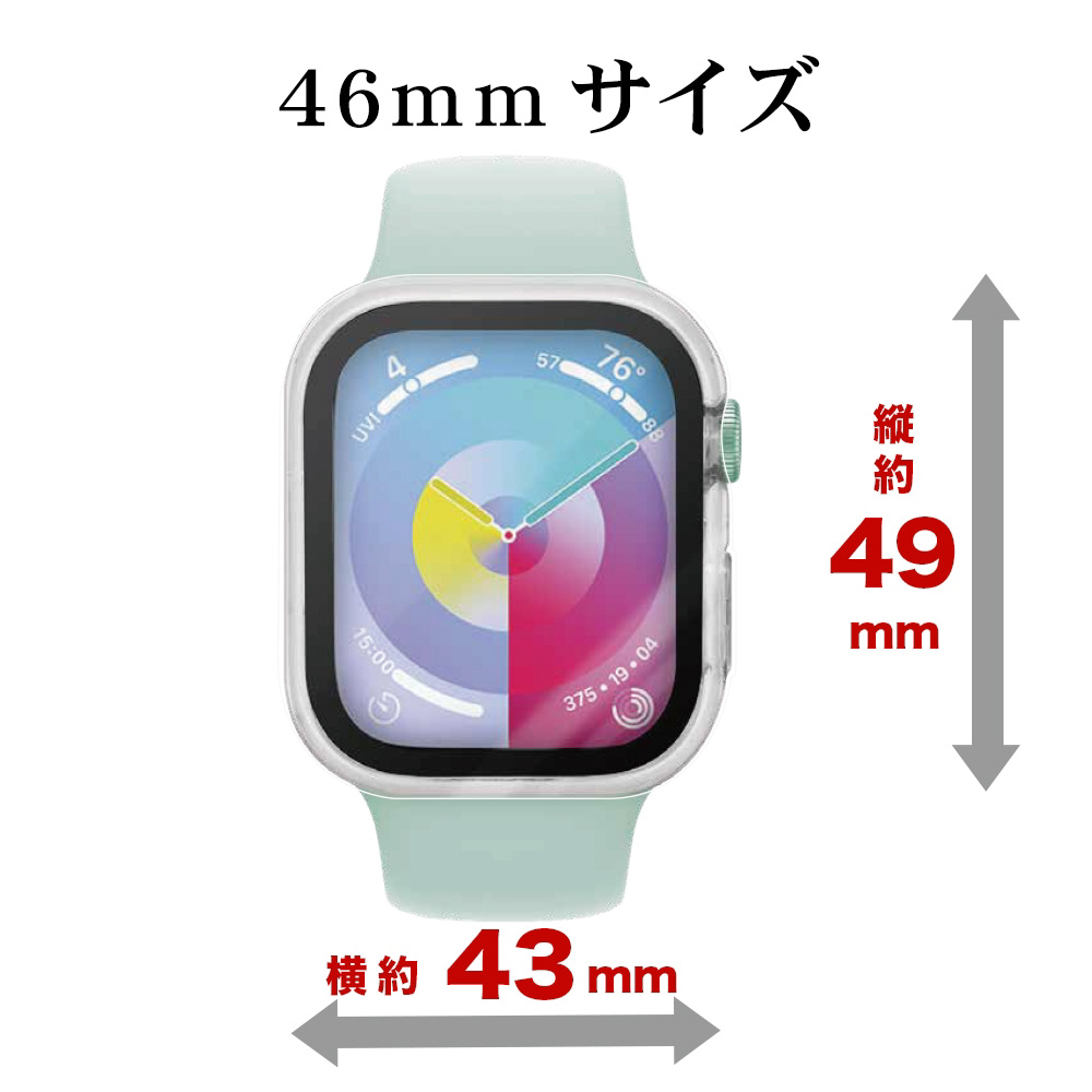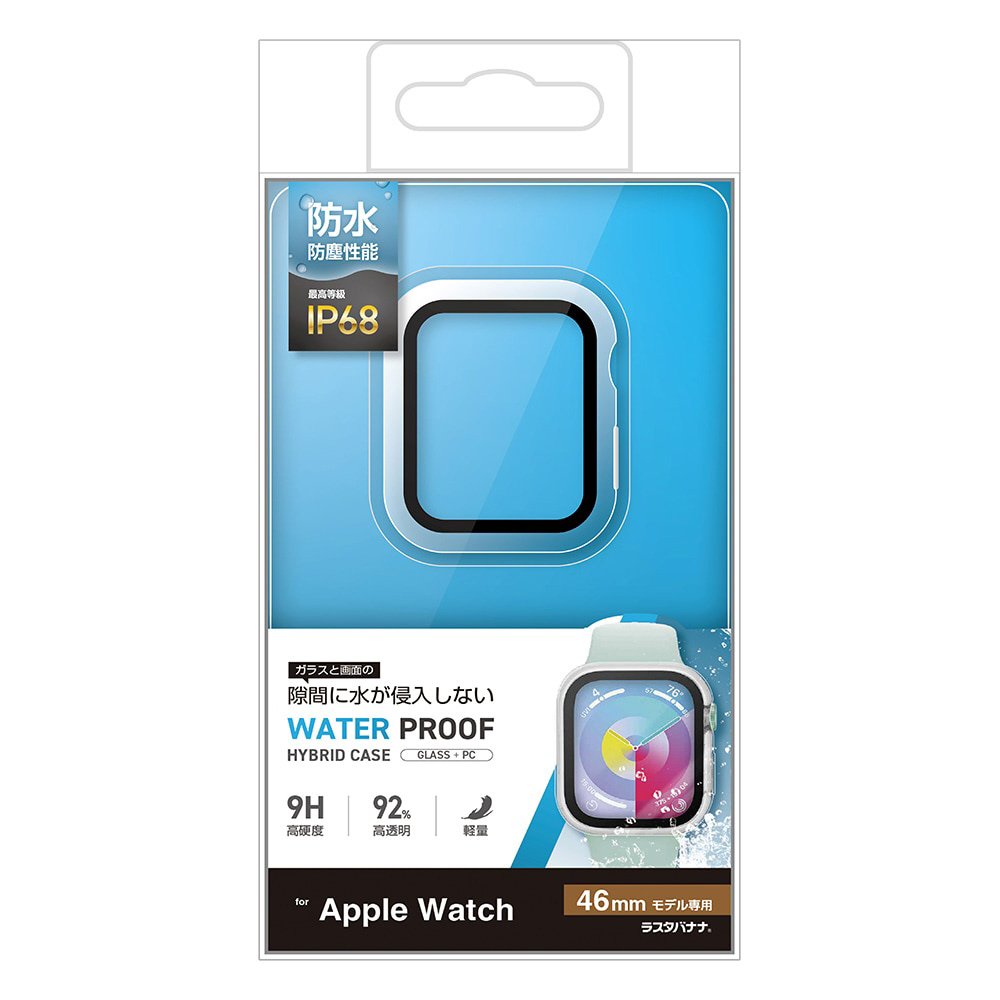 Apple Watch series10 46mm ガラスフィルム ケース カバー ハイブリッド 高光沢 高透明 PC+GLASS ガラス一体型プロテクター 防水ケース IPX68 表面硬度9H アップルウォッチ クリア GHB4813AW46