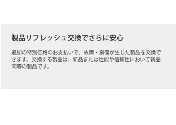 特別価格のお支払いで、故障・損傷が生じた製品を交換できます。