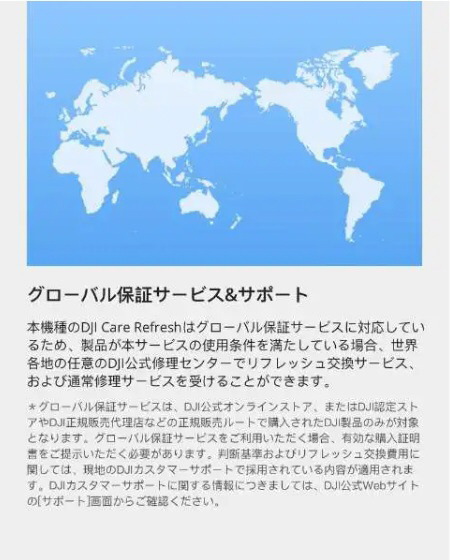 水没、画面割れなどをカバー、DJI Care Expressで交換時の時間短縮、製品交換時の往復送料無料、グローバル保証サービス