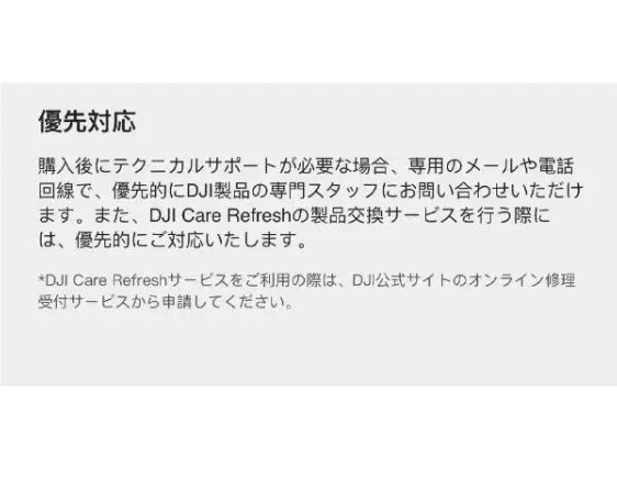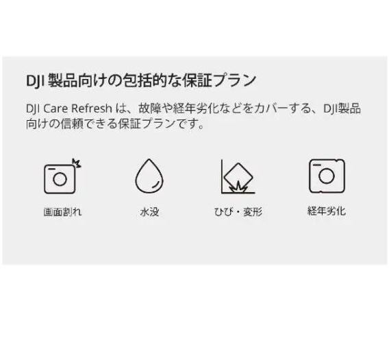 DJI製品向けの包括的なアフターサービスプランです。