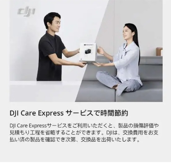 水没、画面割れなどをカバー、DJI Care Expressで交換時の時間短縮、製品交換時の往復送料無料、グローバル保証サービス