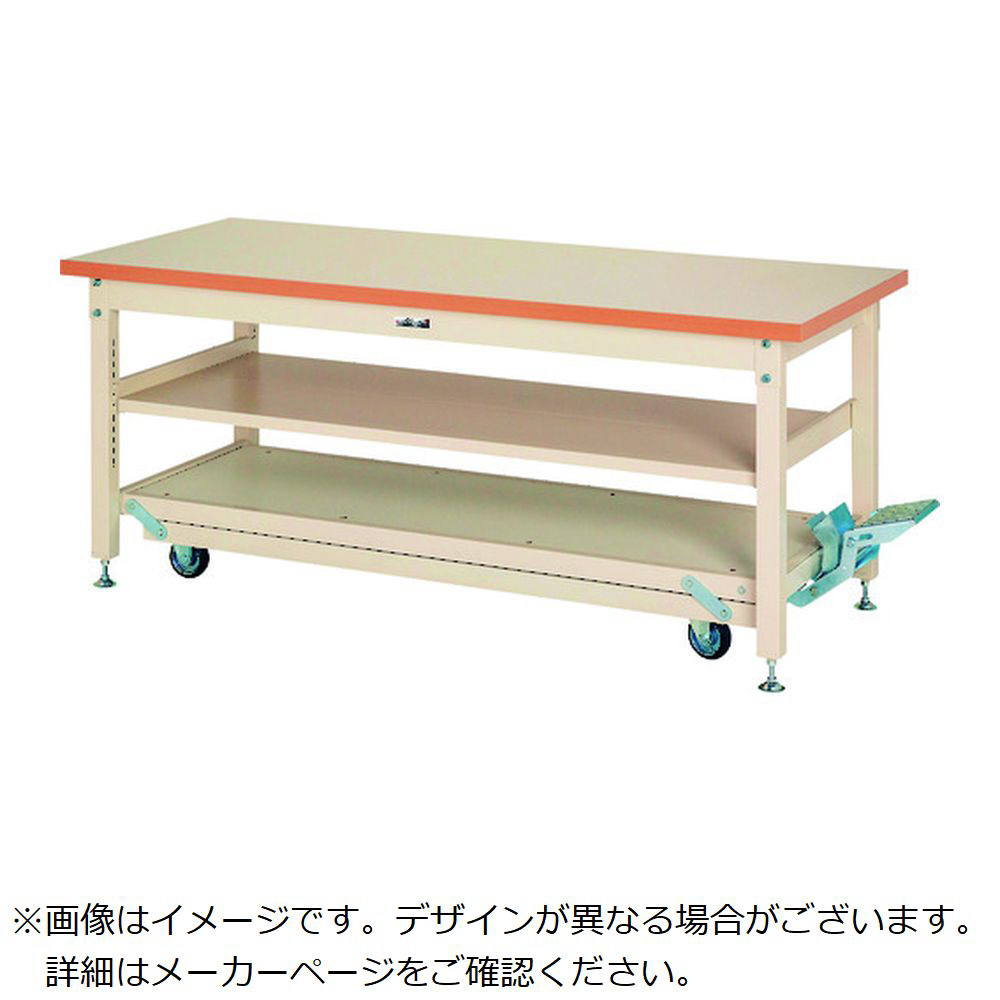 ヤマテック 重量作業台 ワークテーブル ペダル移動タイプ 中間棚付 メラミン天板 W1800×D750×H922mm ヤマテックアイボリー