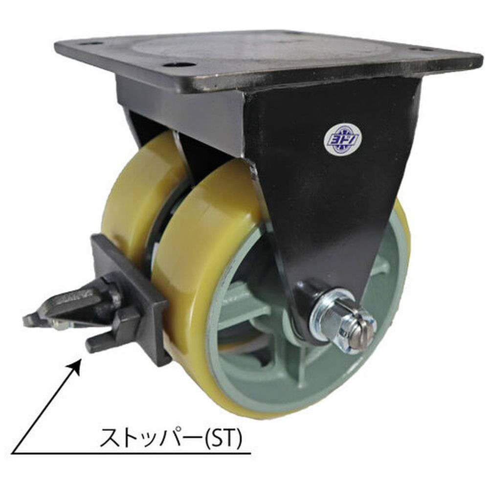 ヨドノ 鋳物超重荷重用双輪キャスター 固定車 ウレタン車輪 ストッパー付