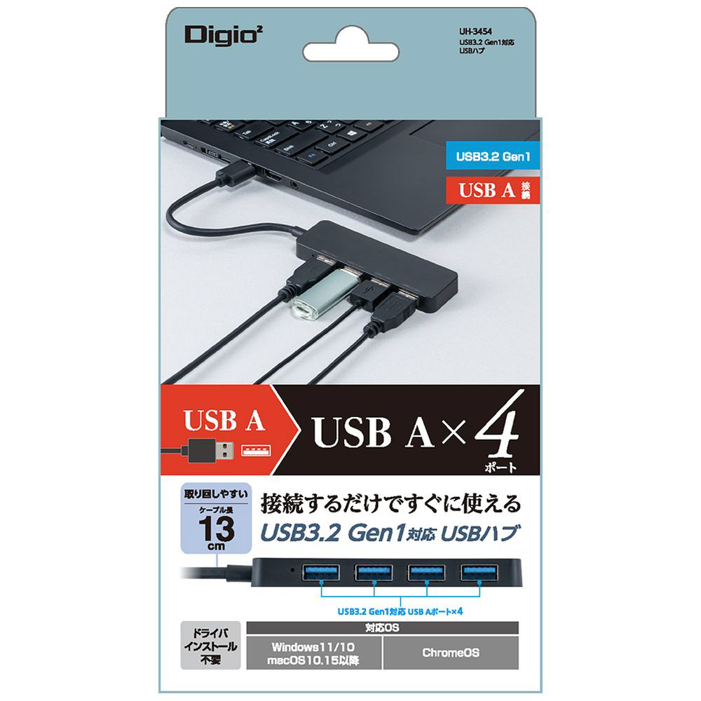 UH-3454BK USB-Aハブ (Chrome/Mac/Windows11対応) ブラック [バスパワー /4ポート /USB 3.2 Gen1対応]