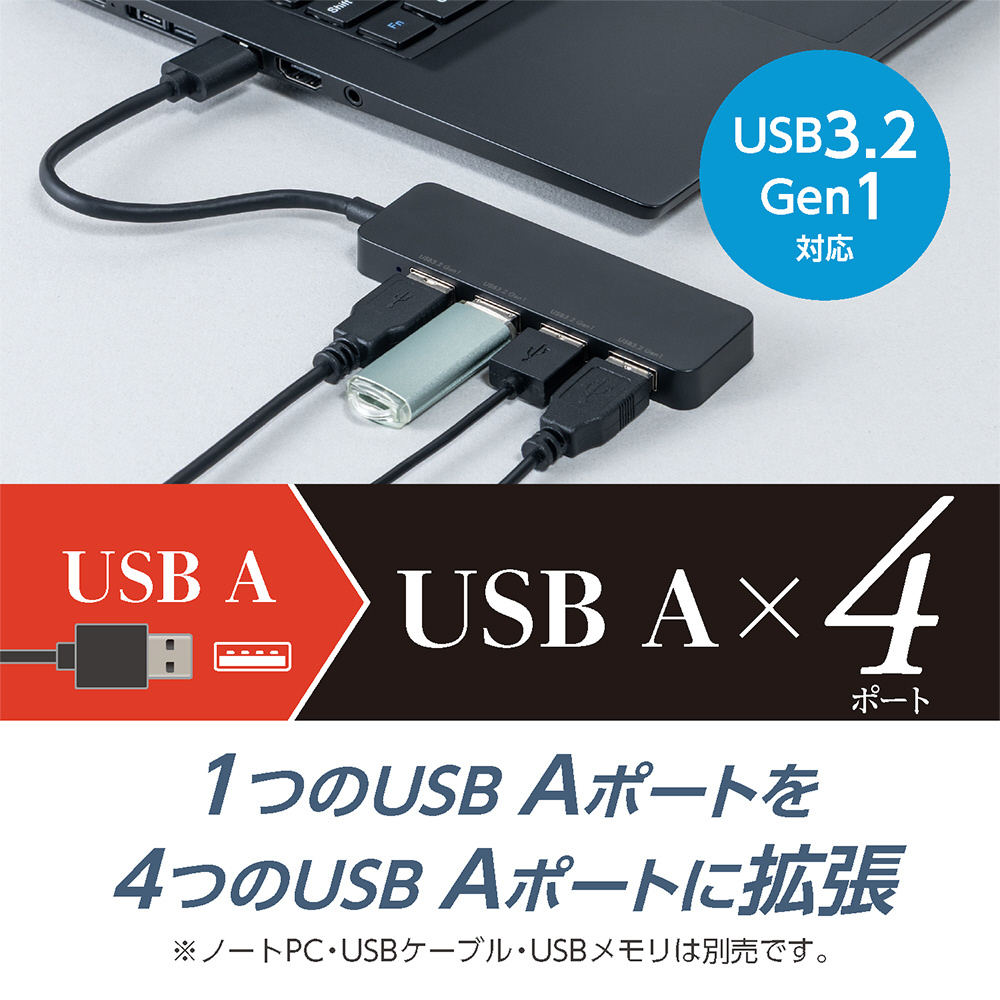 「USB3.2 Gen1対応4ポートハブ USB A」