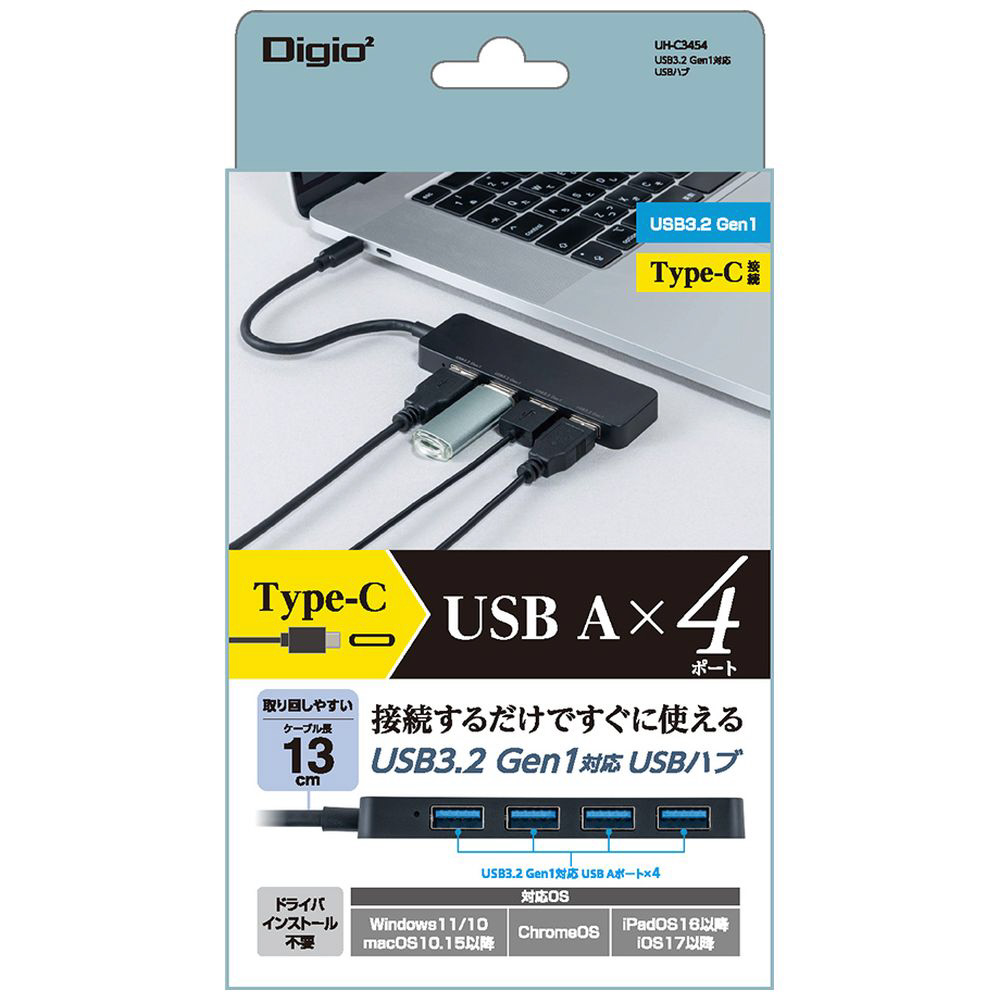 UH-C3454BK USB-C → USB-A 変換ハブ (Chrome/iPadOS/iOS/Mac/Windows11対応) ブラック [バスパワー /4ポート /USB 3.2 Gen1対応]