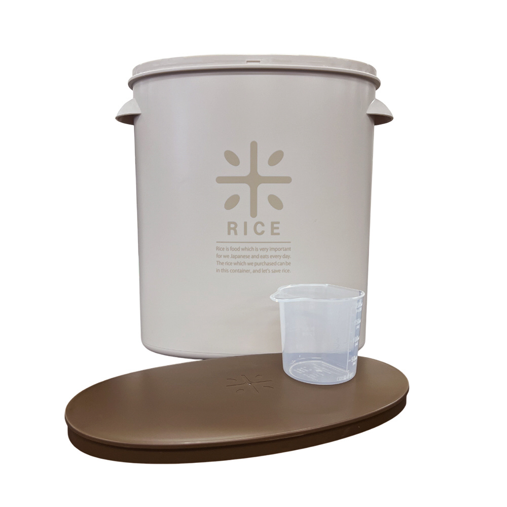 袋から米びつへの詰め替えが不要で便利!袋のまま収納できる米びつです。無洗米も計れる計量カップ付き。