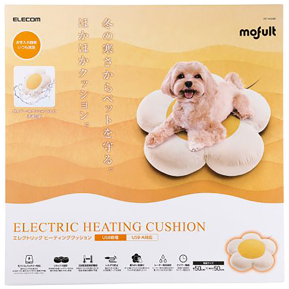 冬の暮らしを温かく快適に。柔らかな肌触りとふっくらした花びらのデザインで愛犬や愛猫がリラックスできる、USB給電式のヒーティングクッションです。モバイルバッテリー対応でコンセントがない場所でも使えます。外カバー・中クッションともに手洗いできるので、清潔を保ちながら繰り返し使えます。