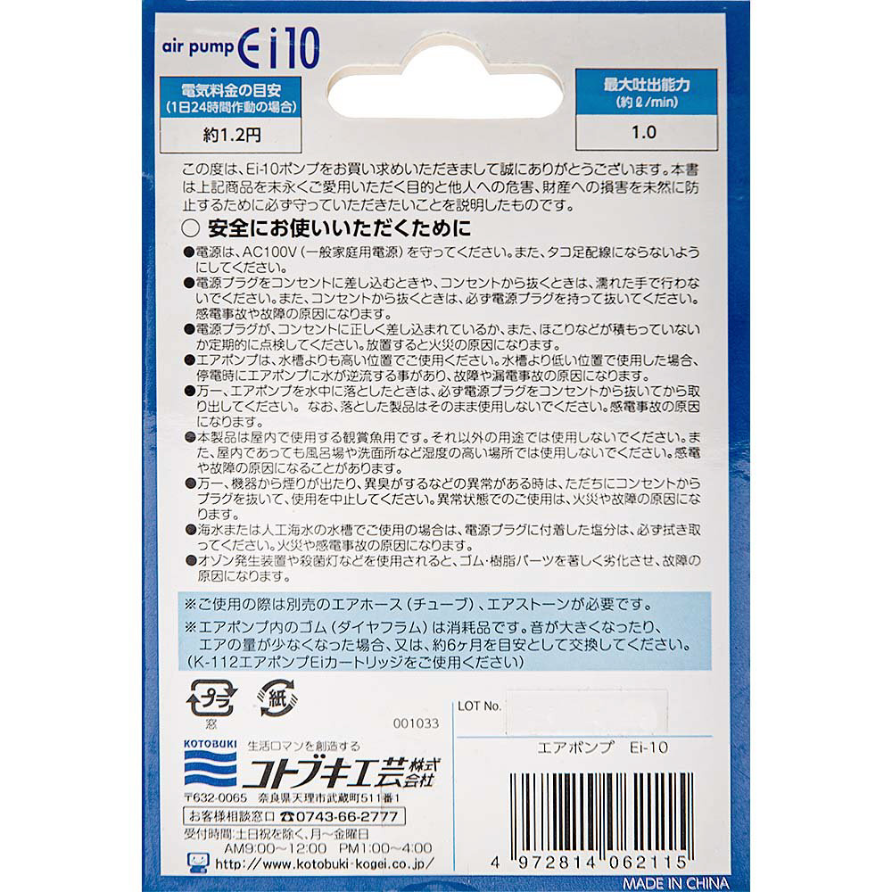 コトブキ工芸 エアポンプ Ei 10
