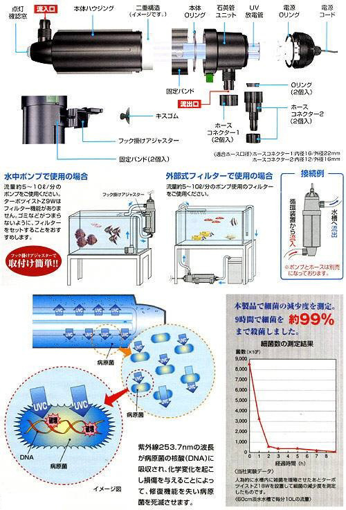 ●紫外線による有機物分解で飼育水を透明で美しく保ちます。