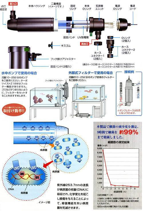 ●紫外線による有機物分解で飼育水を透明で美しく保ちます。