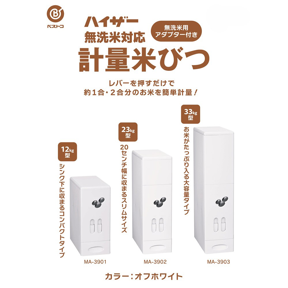 米びつ 12kg 計量機能 スリム 無洗米対応 オフホワイト ハイザー MA-3901
