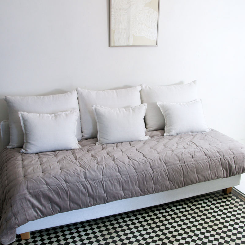 表面はベルベットコットン、裏面はコットンで季節や気分に合わせて雰囲気を変えられます