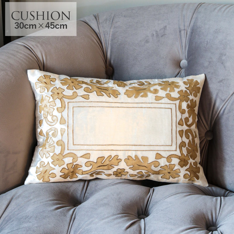 ビーズ 刺繍デザインクッションカバー アップリケ La deco